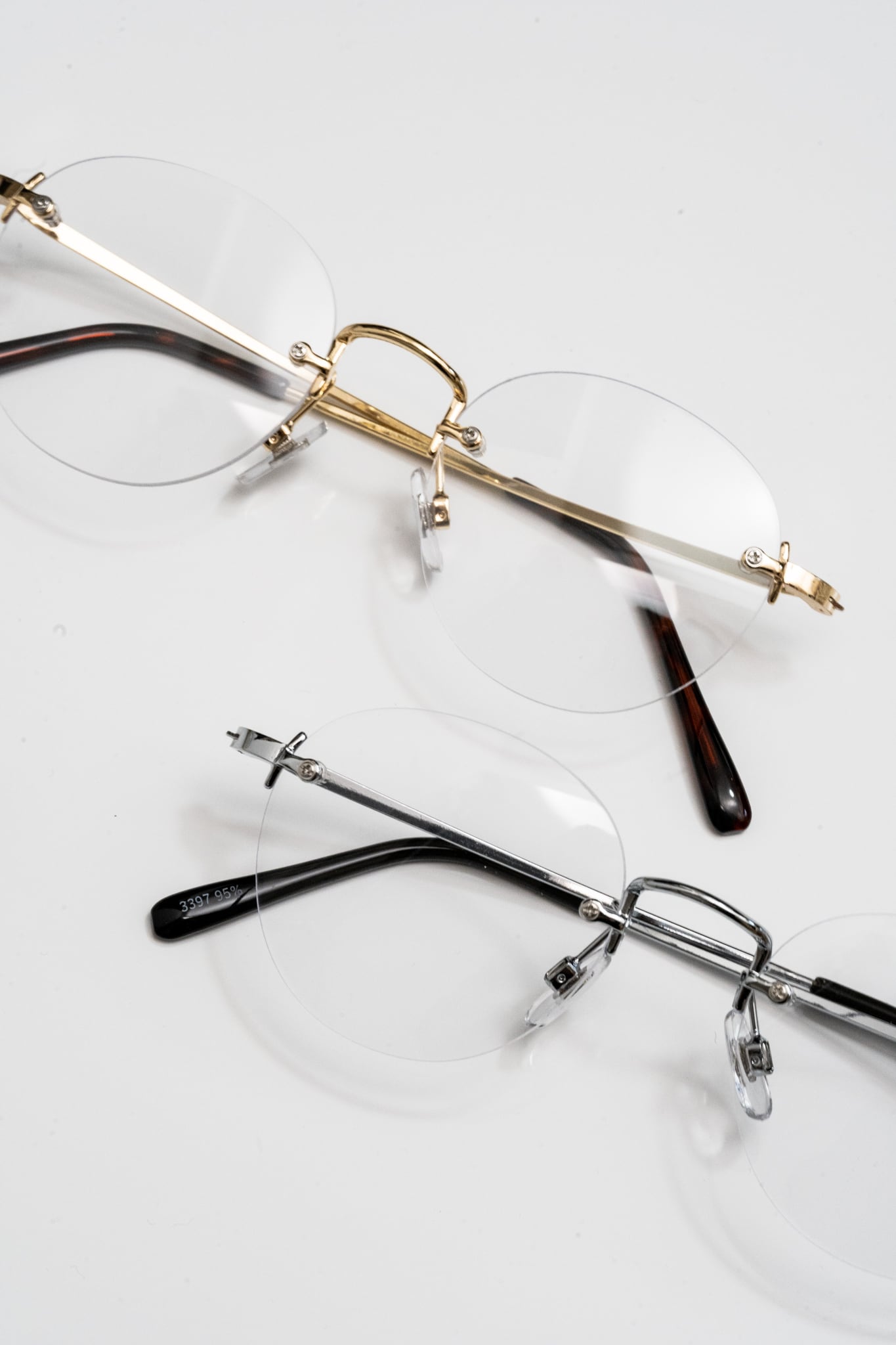 ・トレンドのメタルフレームと縁無しのリムレスデザイン。